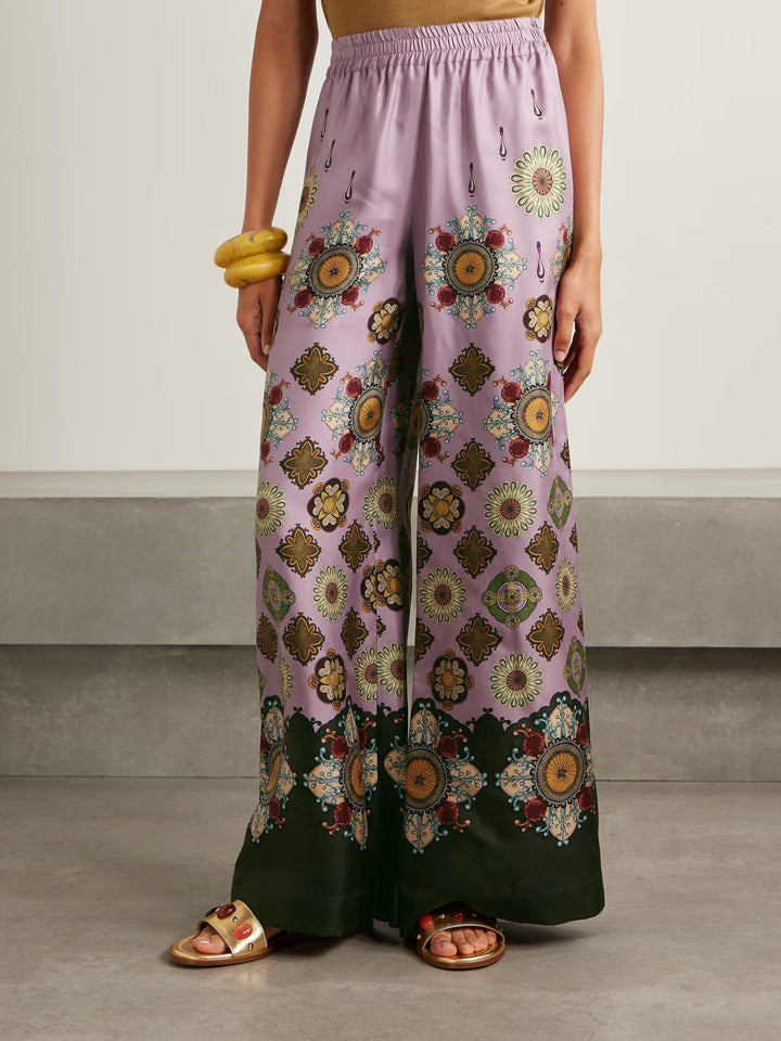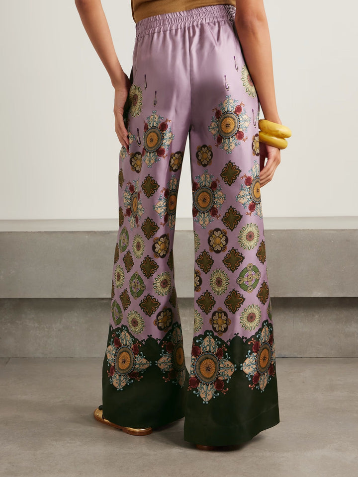 Casual Loose Retro Satin Top & Wide Leg Pants