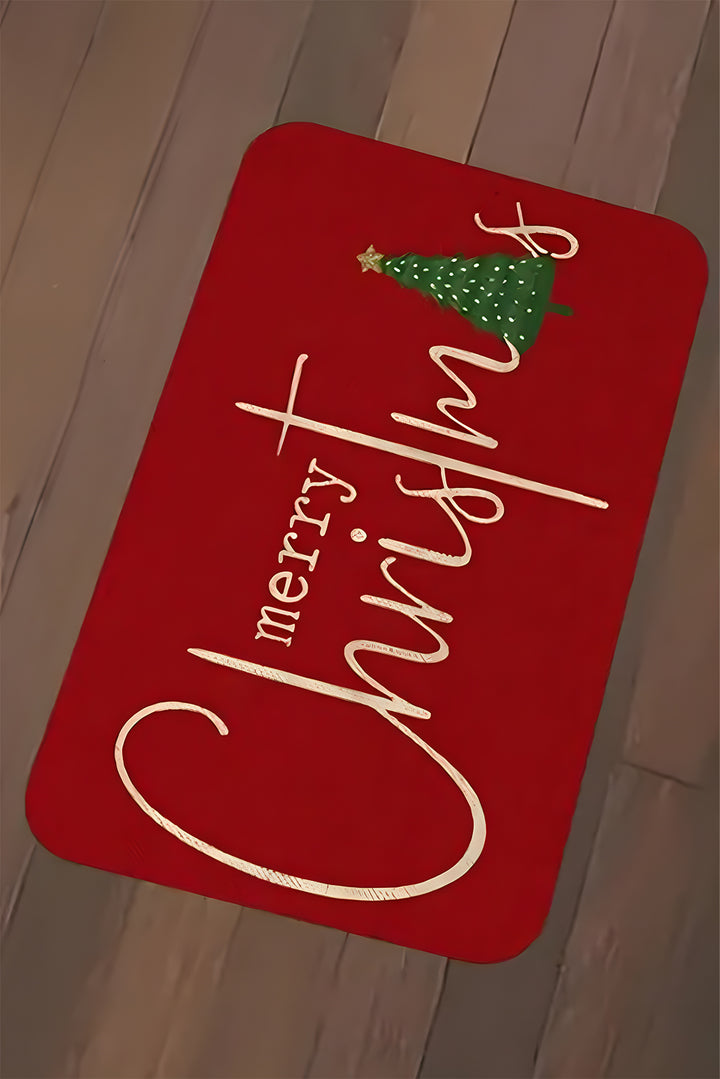 Fiery Red Merry Christmas Entrance Mat
