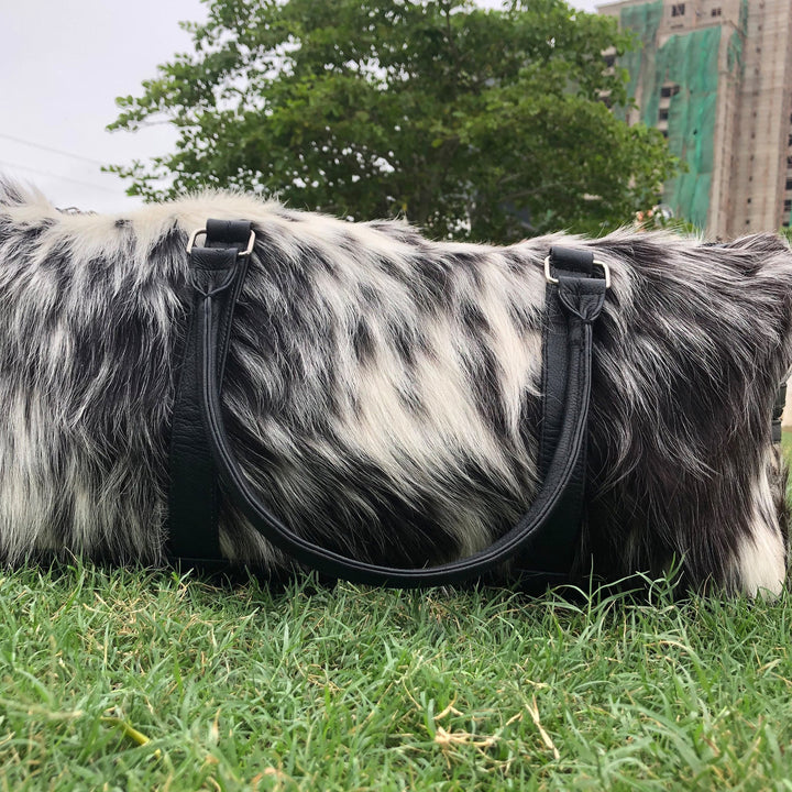 Introducing the ultimate travel companion for adventurers and wanderlust souls - our genuine cowhide leather duffel bag! This stylish and durable medium-sized hair-on bag, with an eye-catching animal print, is the perfect size for weekend getaways, measuring 20x12x11 inches. Handcrafted with love and care, this cowhide duffel bag is not only a statement piece but also a practical and functional accessory that will last you a lifetime.