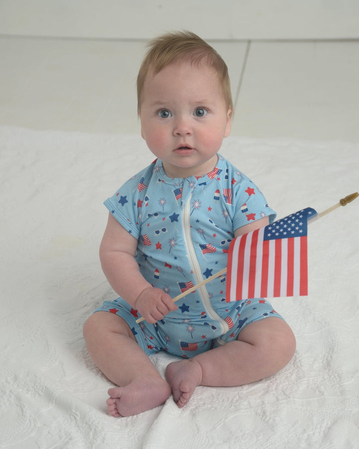 Our playful, bamboo romper features short sleeves, comfy shorts, and our signature double zipper, this romper adds a fun and quirky twist to your nighttime look. So go ahead and cozy up in style with this must-have addition to your wardrobe!