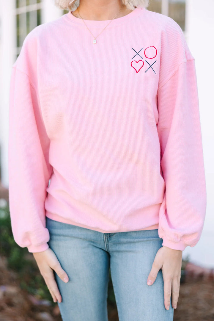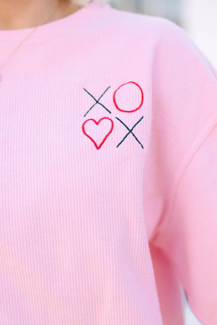 White 3d Ribbed XOXO Heart Embroidered Drop Shoulder Sweatshirt