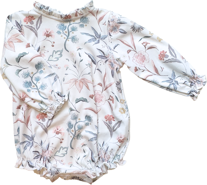 Our Yorkshire Bubble in Field Botanical White is a sweet, new style for Sun House. Crafted from soft cotton, this bubble features dainty ruffle details.  Coordinate with big sister in her Yorkshire Dress: