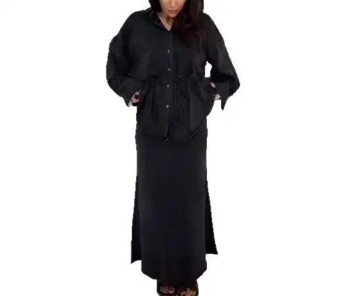 Fashion Two-Piece Set 2025 Autumn New Women's Clothing Belt Waist Cinched Long Sleeved Denim Long Skirt Two-Piece Set