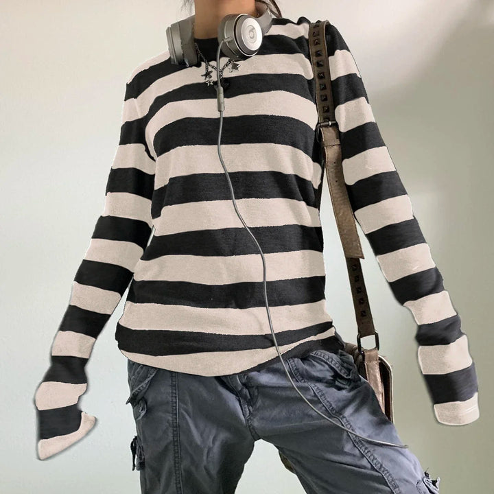 Cocoa Yacht Club Grey Striped Long Sleeve Top