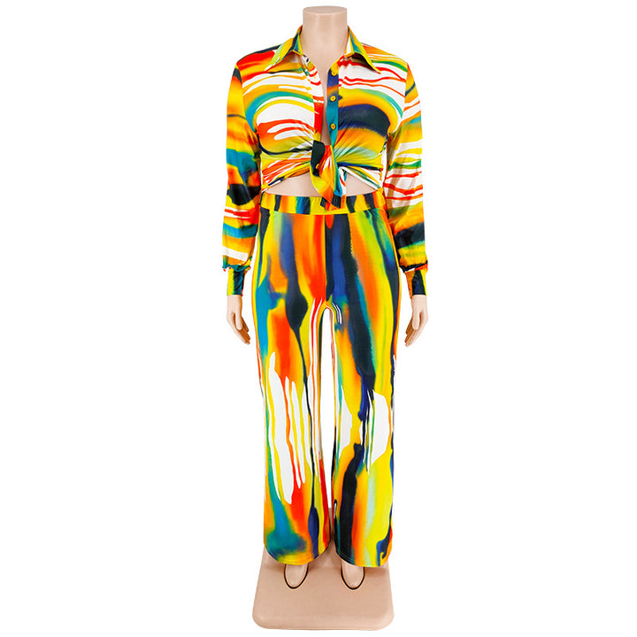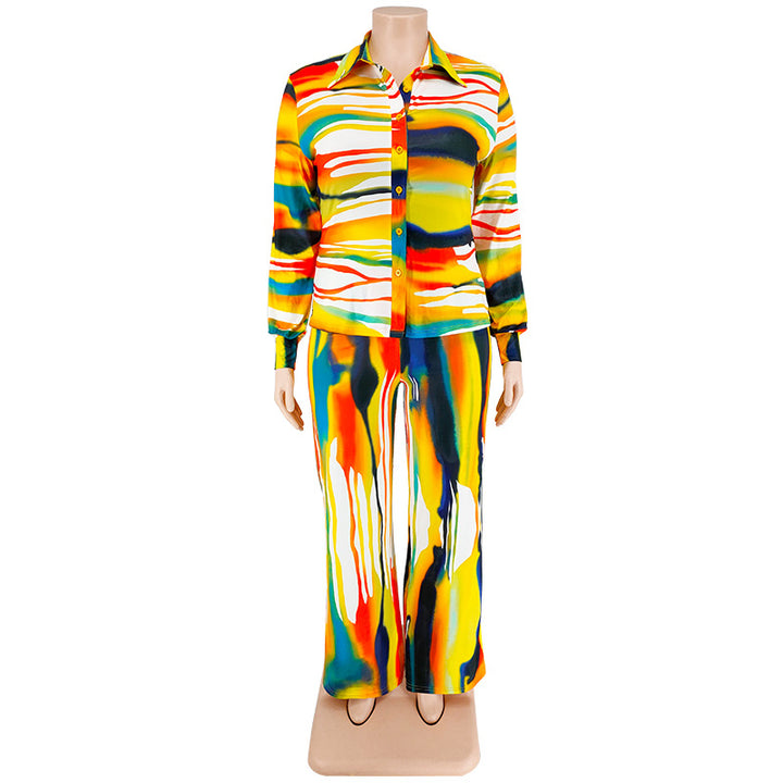 Long Sleeve Shirt Top Casual Trousers Two Piece Sets