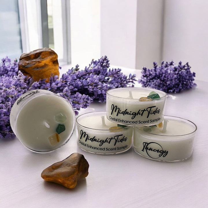 Midnight Tides, Premium Coconut-Soy Wax Tea Light Crystal Candle, 1oz