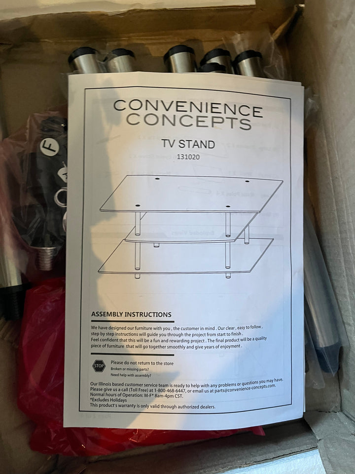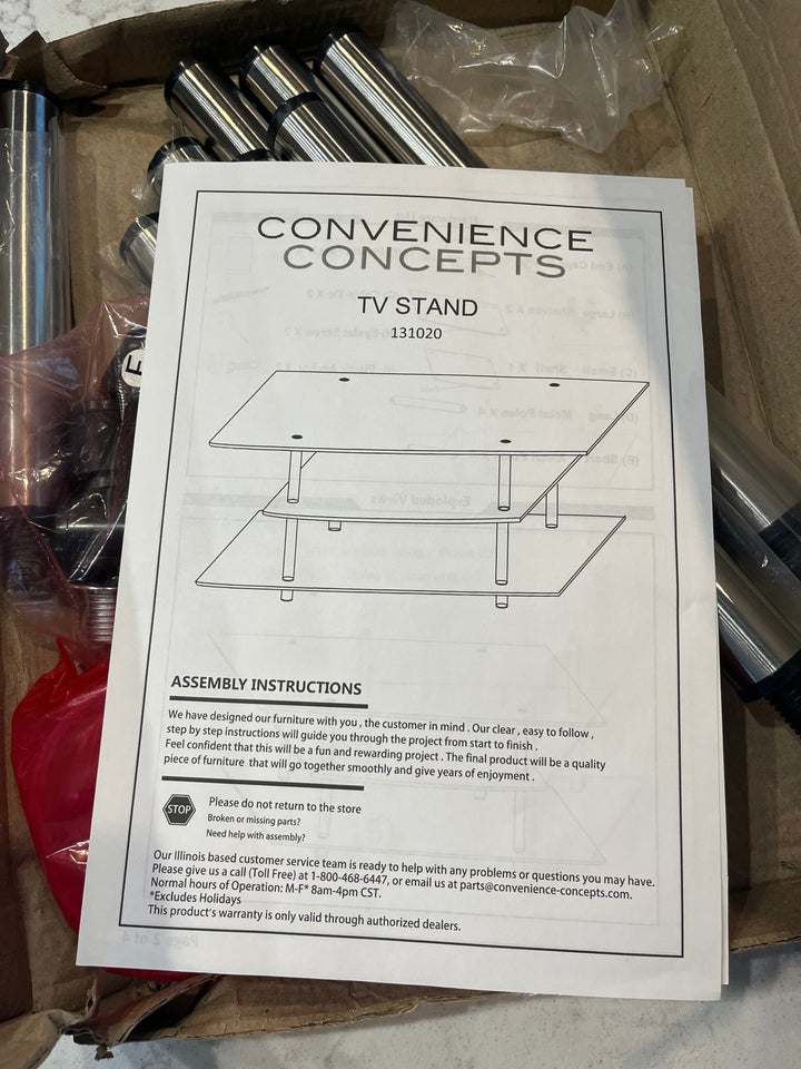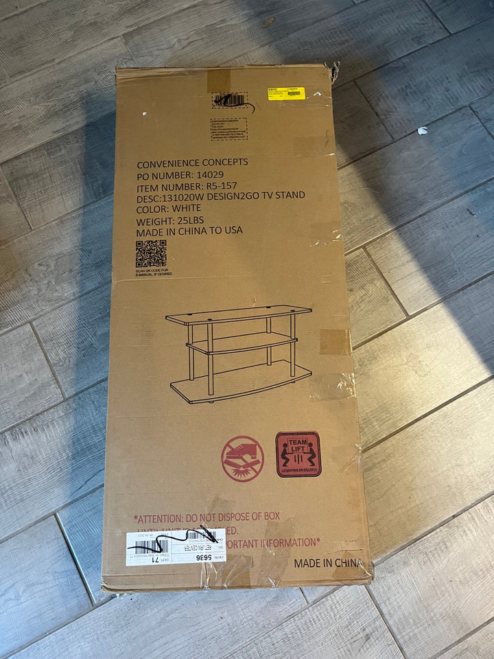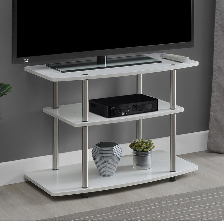 Open Box Convenience Concepts Designs2Go No Tools 3-Tier Stand Entertainment Center 37 Inches, Modern TV Console with Shelves for Living Room, 31.5", White