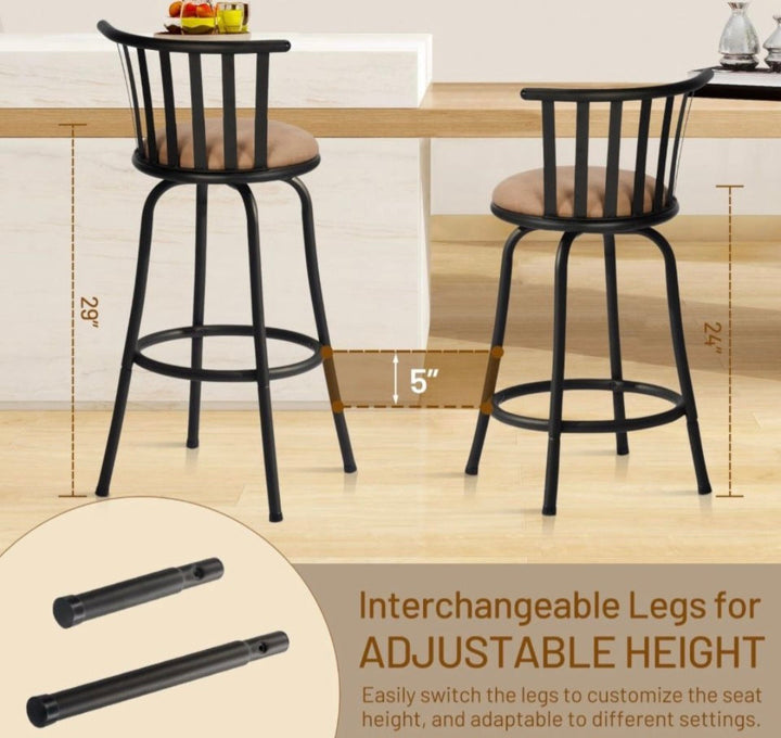 Adjustable Height: Customize your seating experience with interchangeable legs, allowing you to easily switch the seat height to suit your needs. Perfect for any counter or bar height, these stools adapt effortlessly to various settings.