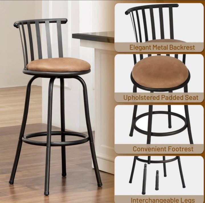 Swivel Functionality: The 360-degree swivel feature allows for easy movement and access, making these stools perfect for social settings. Effortlessly turn and engage with your guests without having to reposition the entire stool.