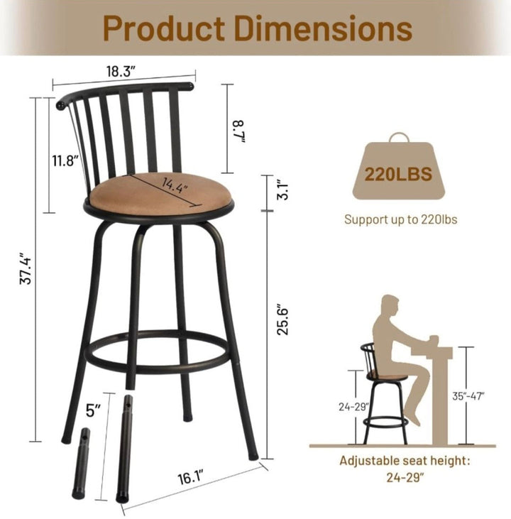 Versatile Use: Ideal for kitchen islands, bistros, restaurants, or home bars, these adjustable barstools are versatile enough to suit any environment. Their sturdy construction ensures they can withstand the demands of both residential and commercial use.