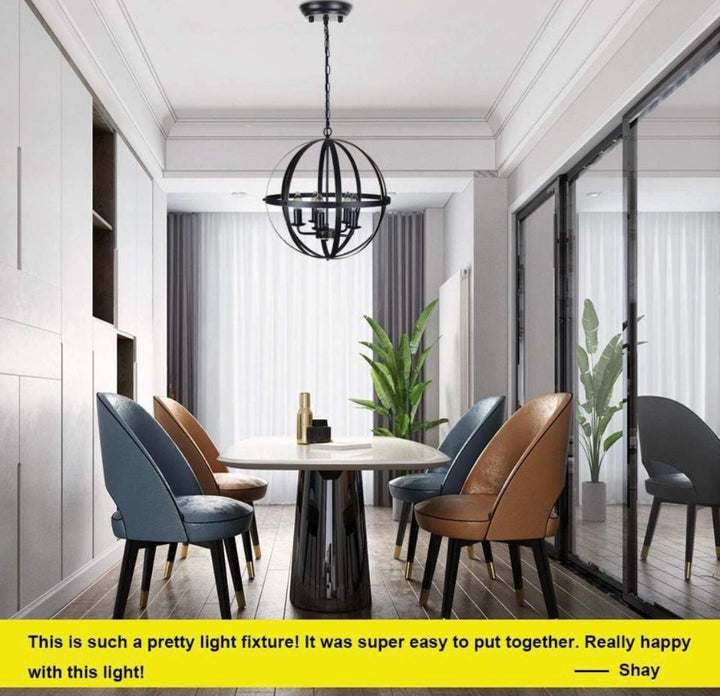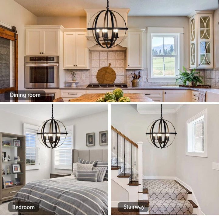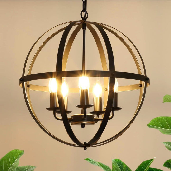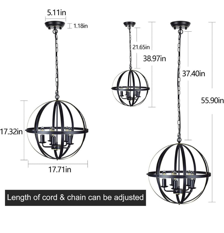 * VINTAGE STYLE: The globe chandelier is made of 5 outer rings that encase the fixture with vintage craftsmanship and industrial design inspired by the atom, the vintage and antiquated design will add a fashionable look, while complementing your rooms decor.