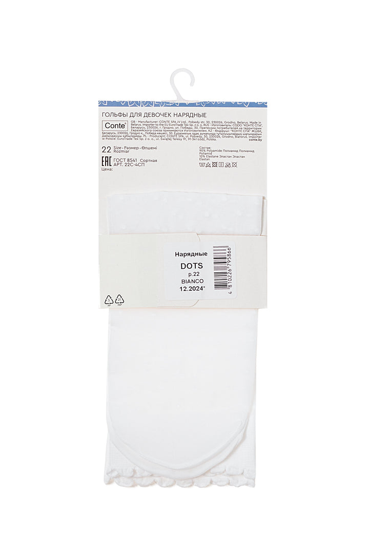 Thin and elastic knee-highs with a "dots" pattern, DOTS, will look great in both a girl's everyday and festive ensemble.