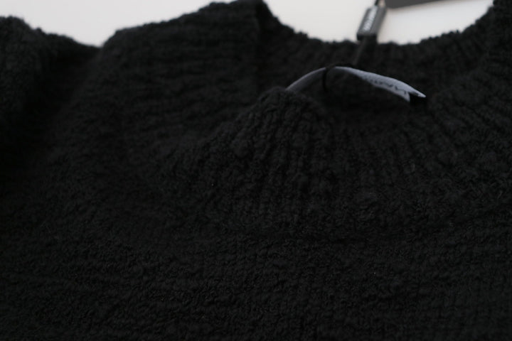 Dolce & Gabbana Black Wool Knit Crewneck Pullover Sweater