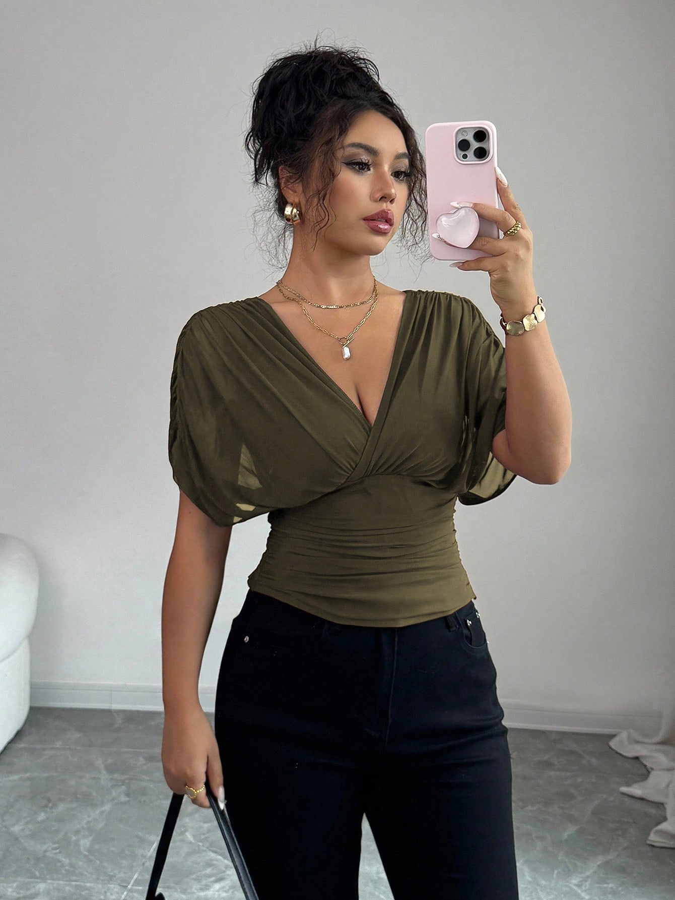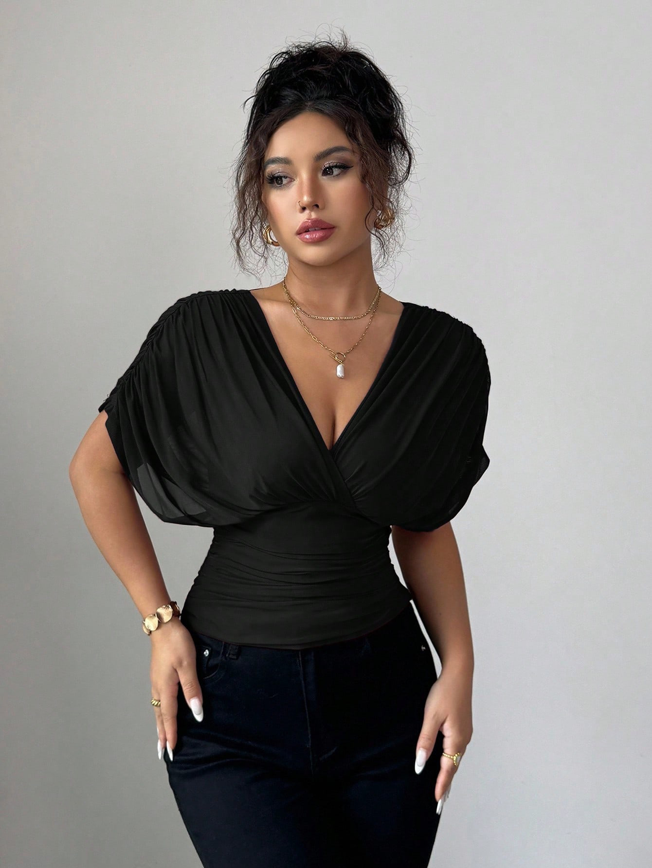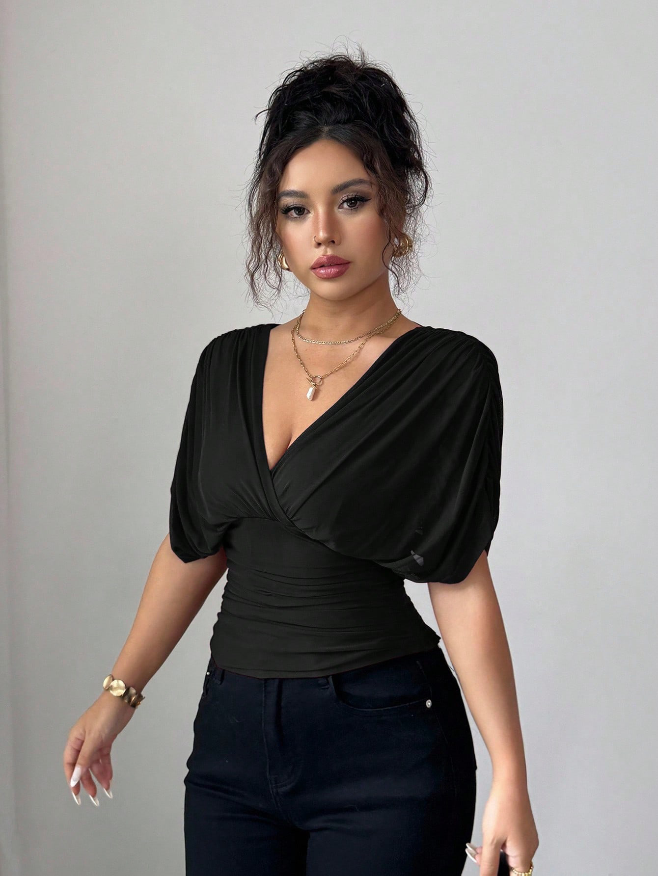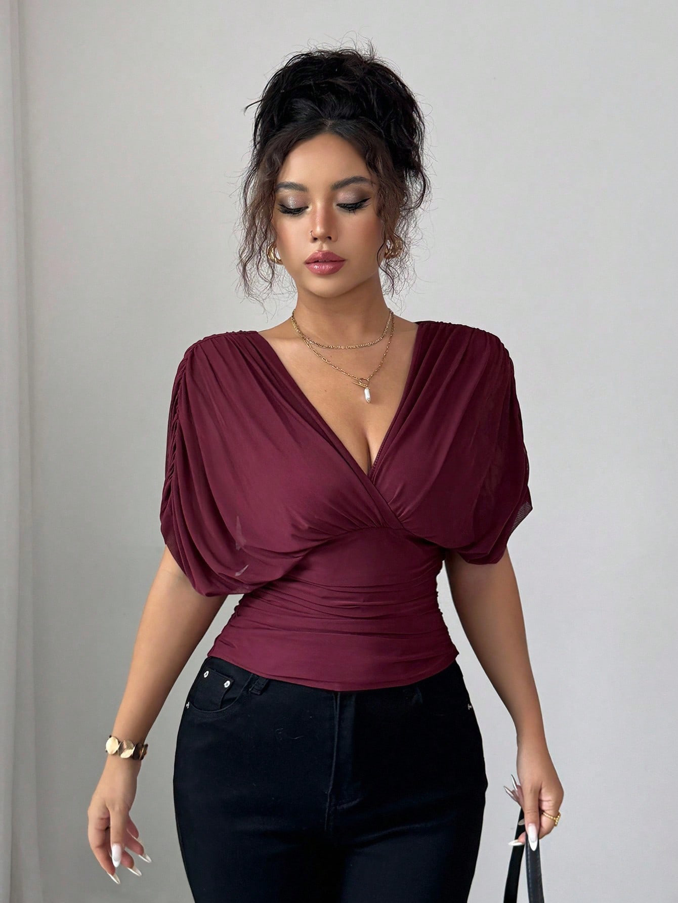 Solid Deep V Plunge Neck Top