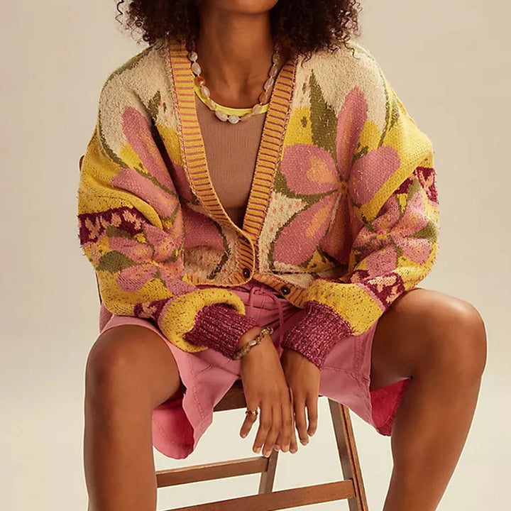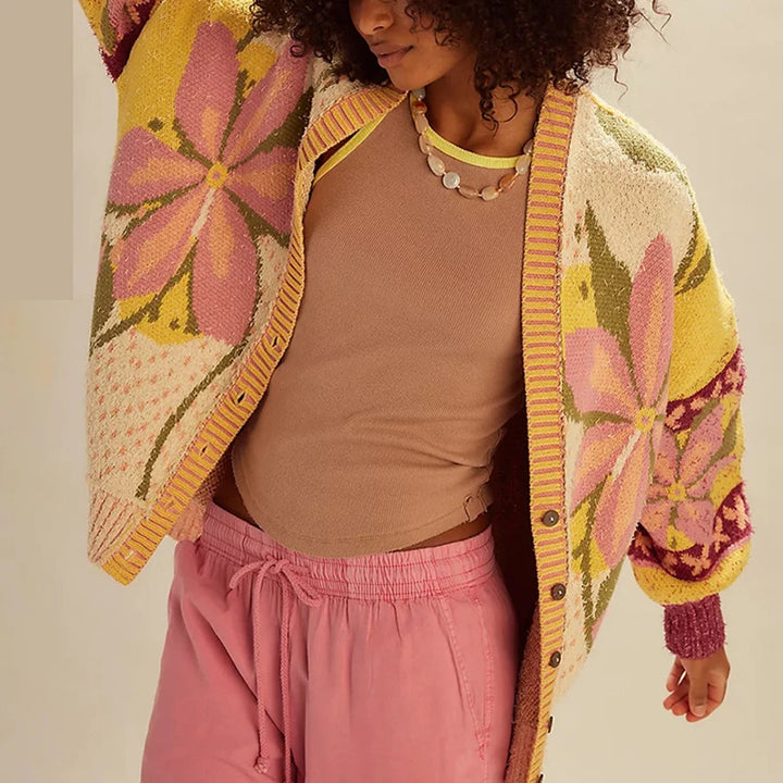 Cocoa Yacht Club Floral Autumn Knitted Cardigan