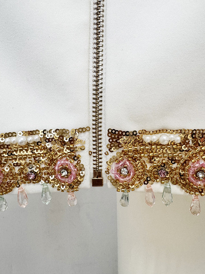 A pair of twill woven shorts featuring slanted front pockets, buttoned back pockets, a zip pocket, buttoned waist, and keychain loop.