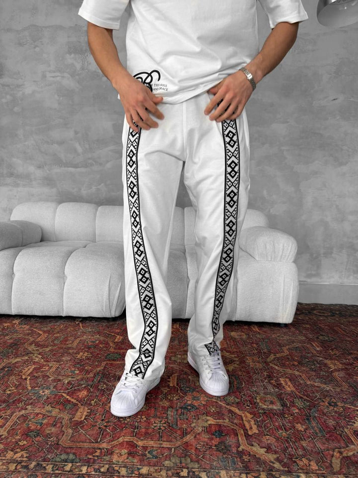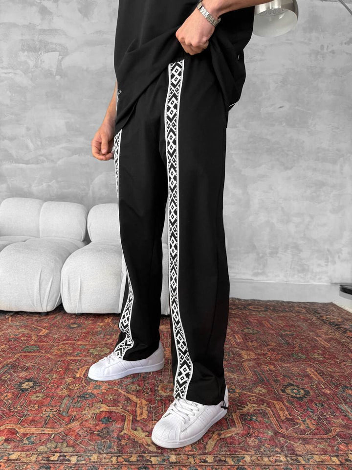 Each pair features tribal-inspired pattern panels running down the sides, adding a stylish twist to your everyday joggers without compromising comfort or flexibility.