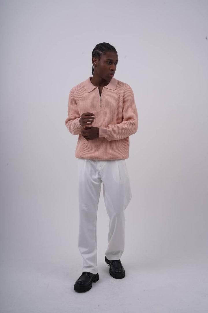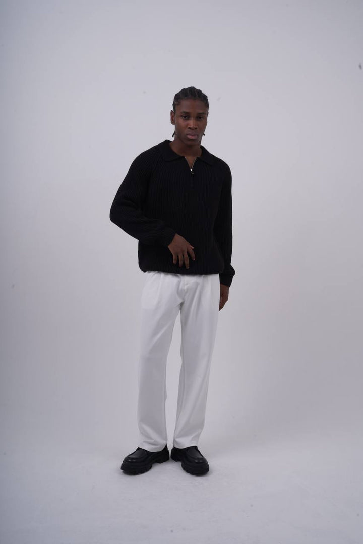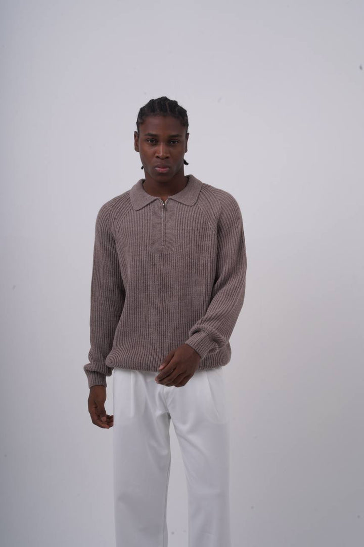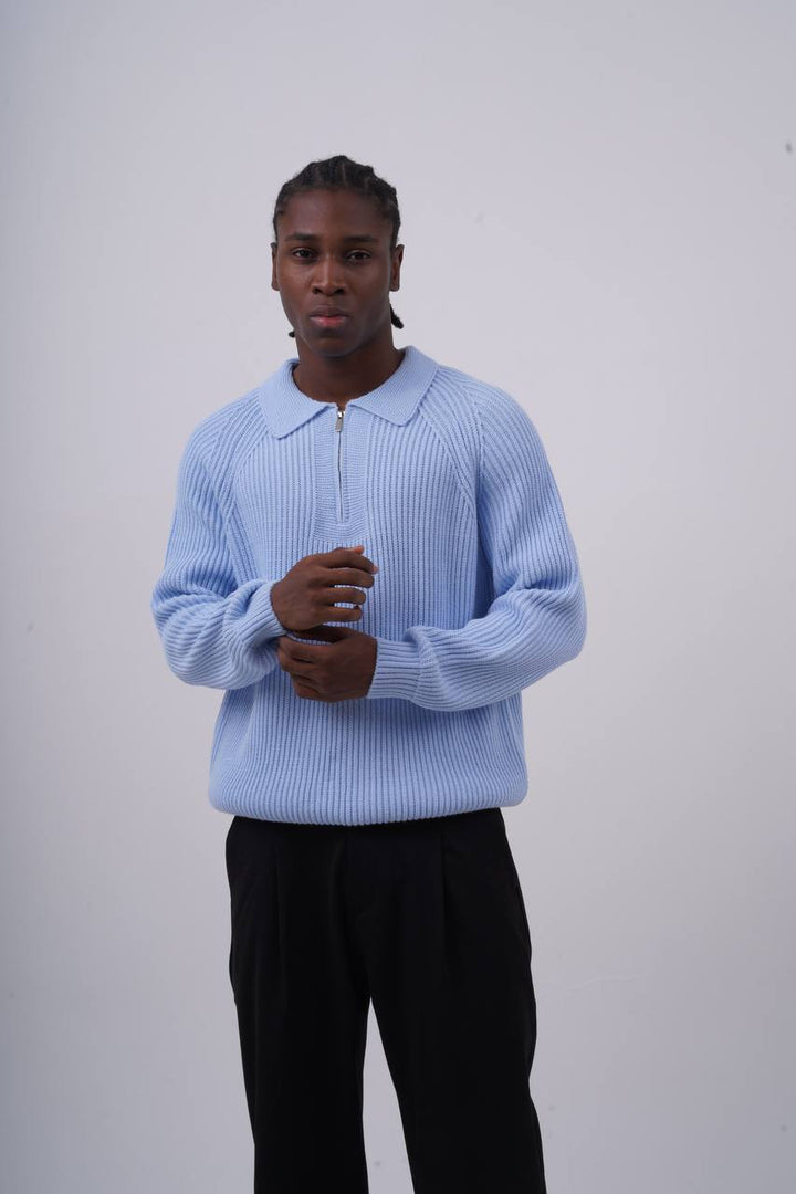 The Ribbed Knit Half-Zip Sweater blends retro elegance with modern streetwear. With its classic polo collar and clean ribbed texture, this pullover is perfect for elevated yet effortless styling.