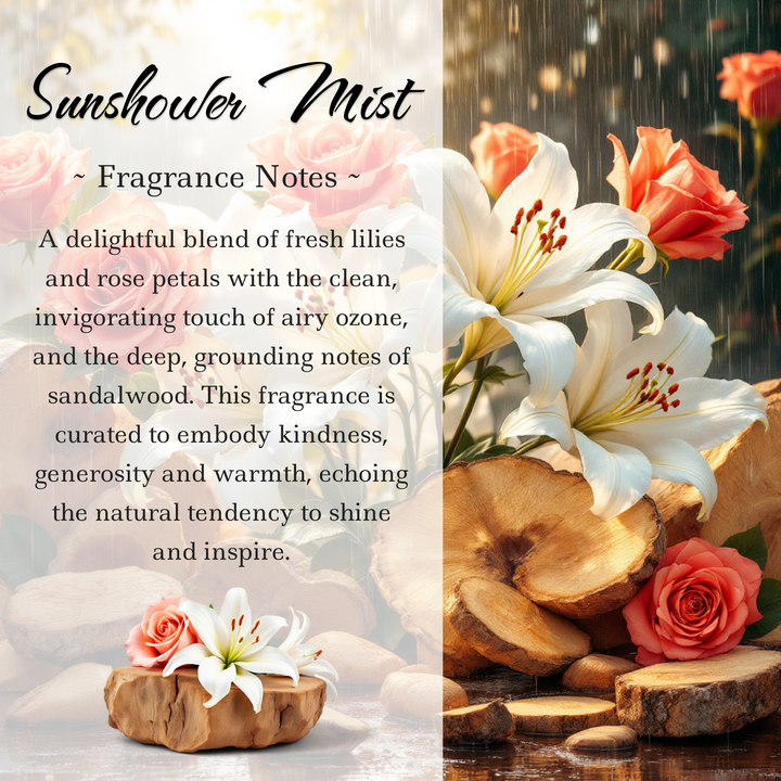Experience the majestic aura of our Crystal-Enhanced Car Diffuser, highlighting the captivating scent of Sunshower Mist. Revel in the delightful blend of lily, rose petals, airy ozone, and sandalwood, meticulously curated to capture a bold and charismatic spirit.