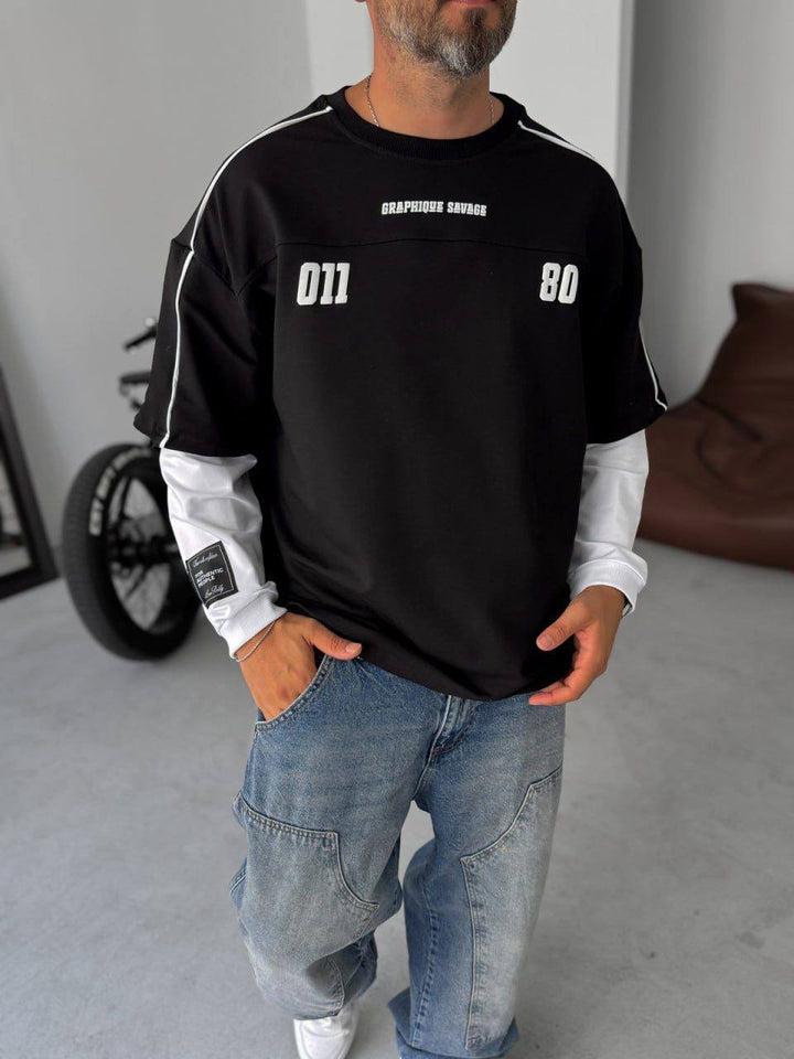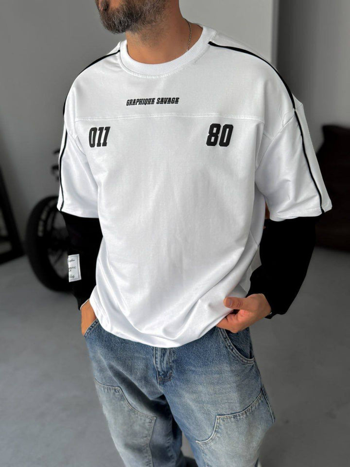 The Unisex Graphic Print Oversize T-Shirt brings boldness and comfort together. Inspired by American football uniforms, this tee features a wide fit and eye-catching front print, making it a true streetwear essential.