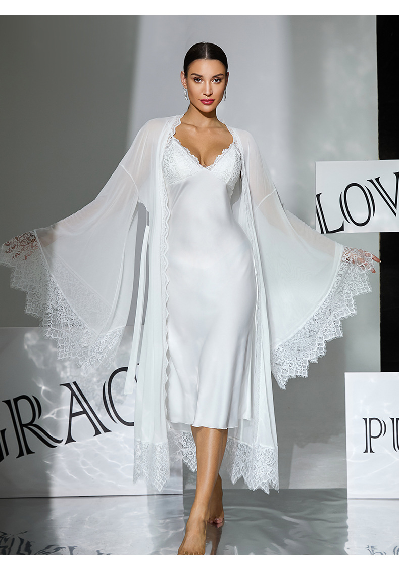 Lace Satin & Sheer Nightgown & Robe