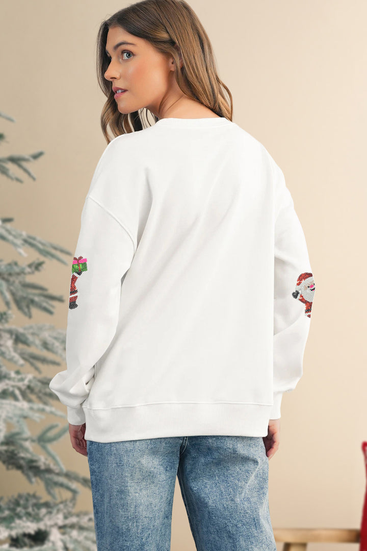 White Santa Delivering Gifts Christmas Sequin Graphic Sweatshirt