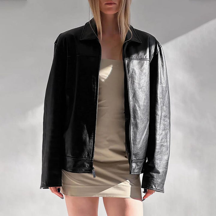 Discover the perfect blend of bold vintage style and premium craftsmanship with this women’s oversized full-grain leather jacket, handcrafted in Pakistan and proudly finished in the USA. Designed with a 1980s-inspired silhouette, this jacket is made from 100% genuine full-grain leather sourced from top tanneries, offering a luxurious feel with long-lasting durability.
