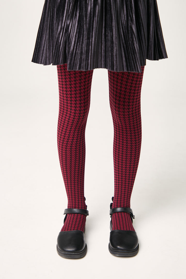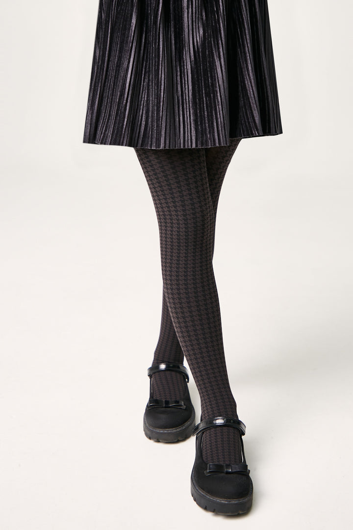Thick elastic OLIVIA tights with a houndstooth pattern add charm to both everyday and festive outfits. Trendy design and perfect fit — great choice for girls.