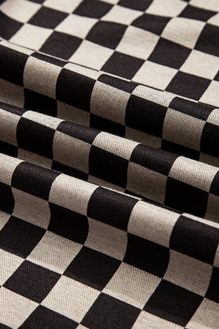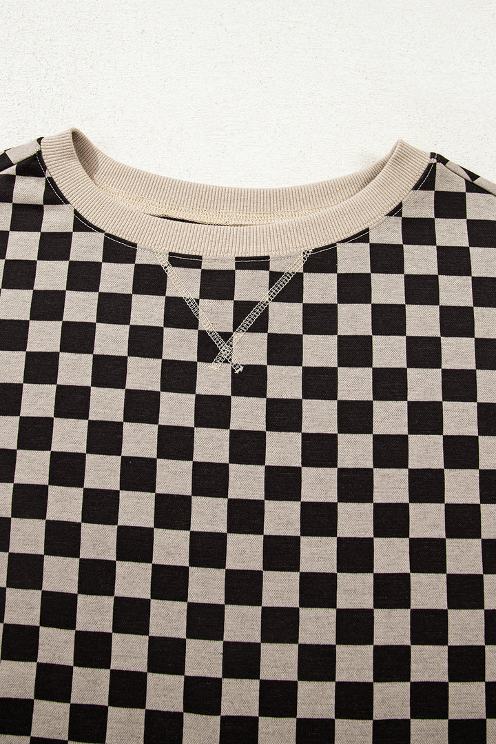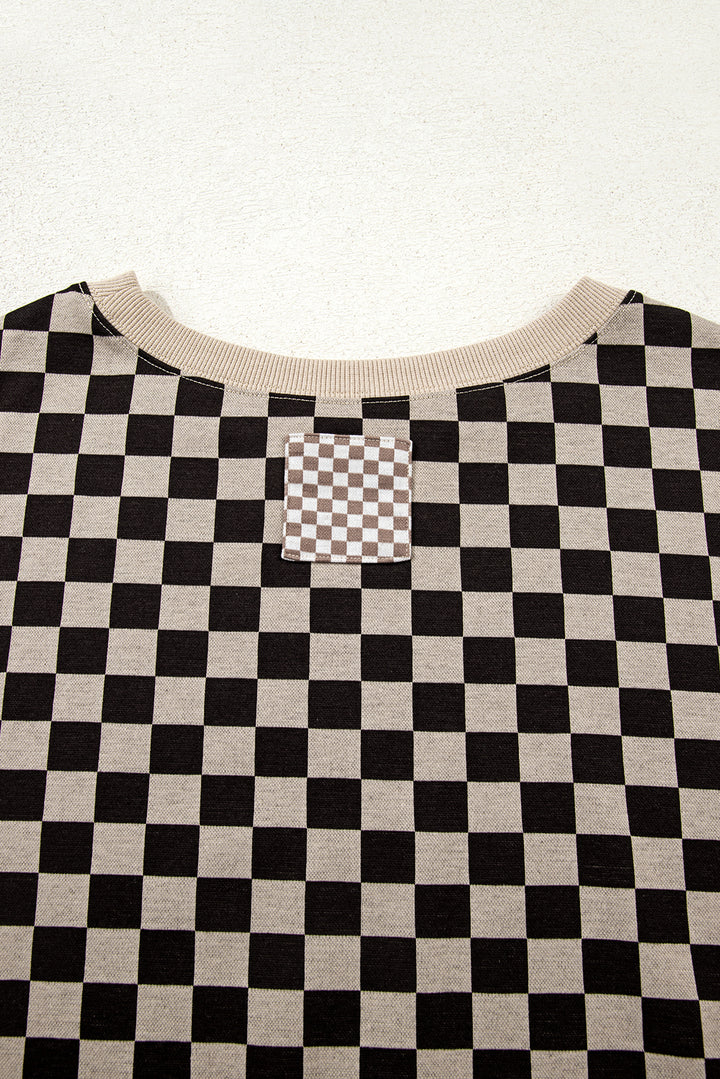 Khaki Mixed Checkered Pattern Patchwork High Low Casual Top