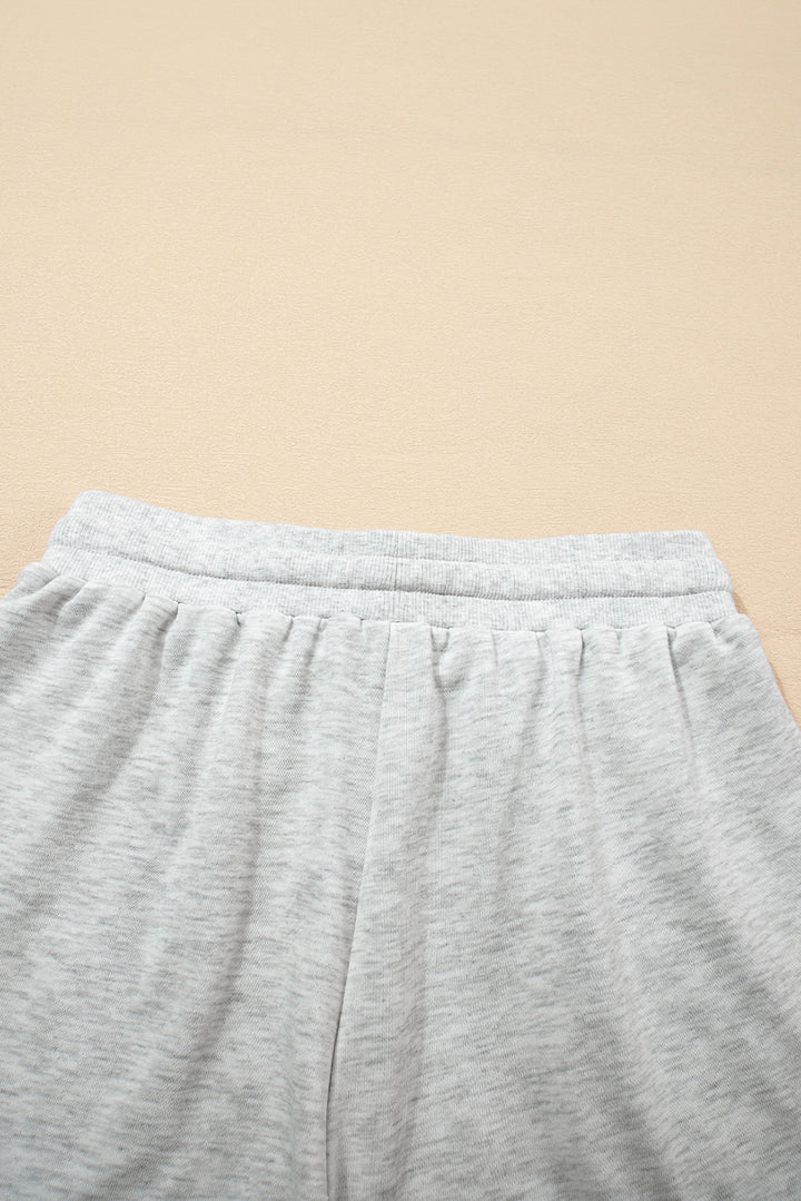 Light Grey Colorblock Raw Hem Pullover and Shorts Set