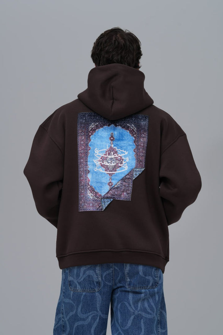 The Saw Prayer Rug Graphic Hoodie blends timeless Arabic calligraphy with a prayer rug-inspired design, creating a unique balance of culture and fashion.