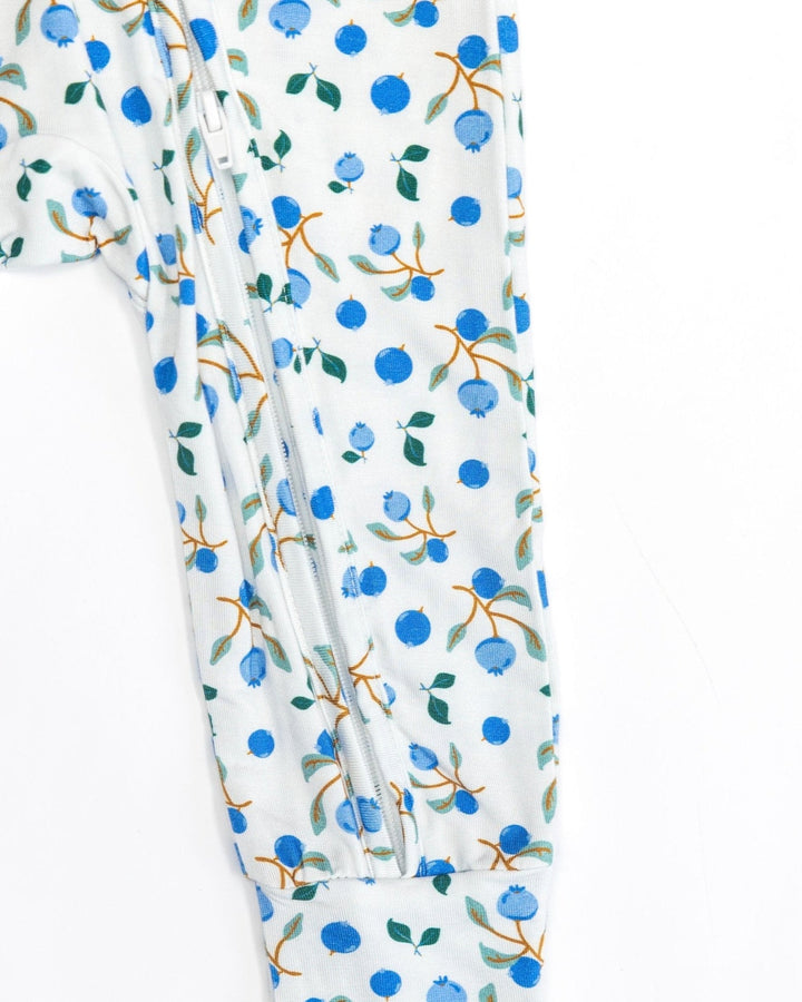 Introducing our romper pajamas in a classic blueberry style - the perfect nightwear for your little one! With its sweet design and cozy bamboo fabric, it provides ultimate comfort. The fold-over cuff feature ensures a secure fit for uninterrupted sleep. Rest easy knowing your child is snug and happy all night.