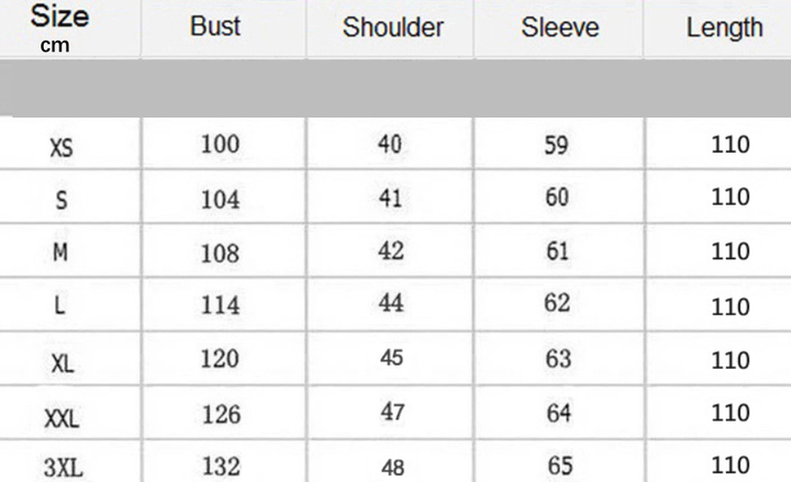 Size: XS, S, M, L, XL, 2XL, 3XL