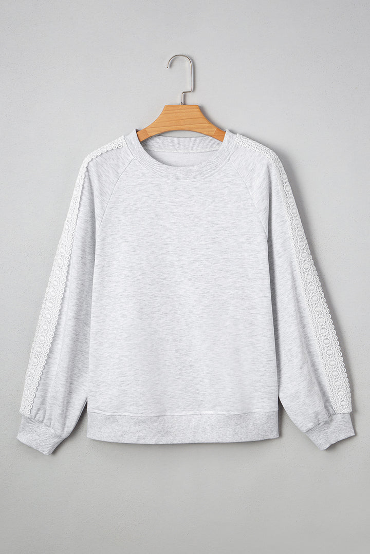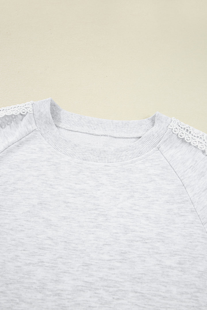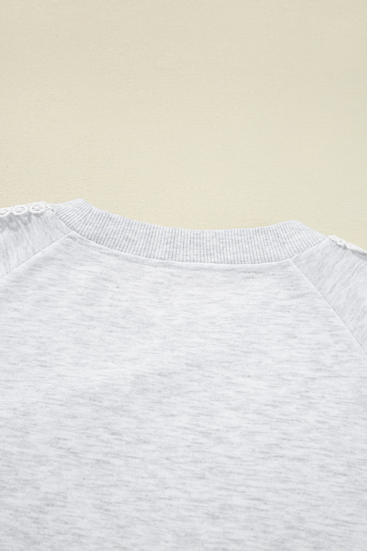 Light Grey Lace Applique Raglan Sleeve Crew Neck Sweatshirt