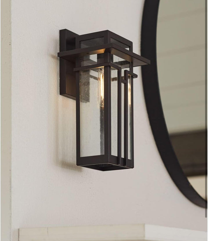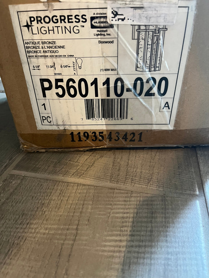 Open Box Progress Lighting Boxwood Collection 1-Light Clear Seeded Glass Craftsman Outdoor Small Wall Lantern Light Antique Bronze, 11.75x6.25x6.25