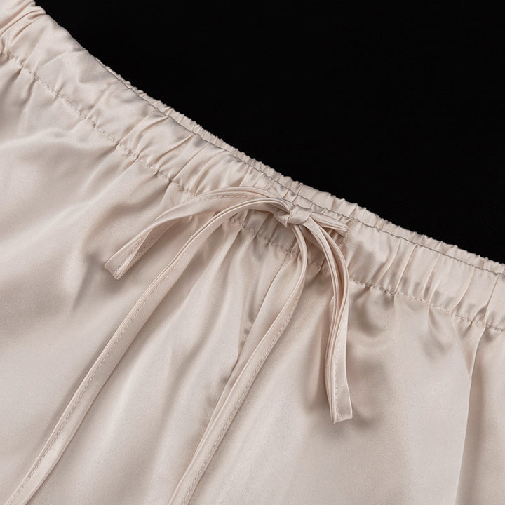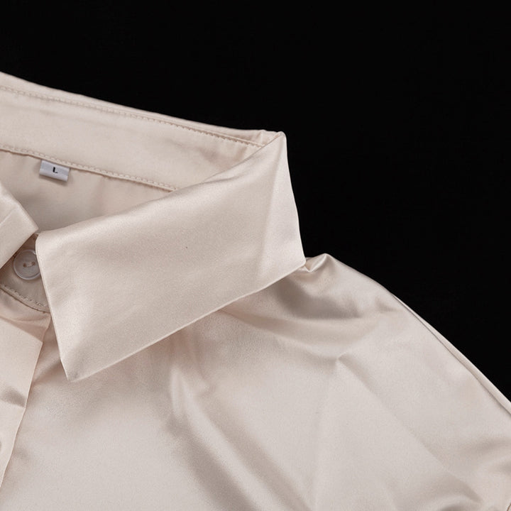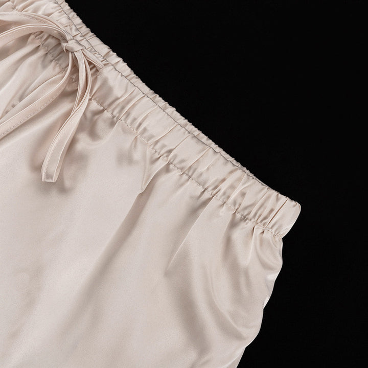 Stitched Bell Sleeve Polo Collar Pajama Top & Pants Set