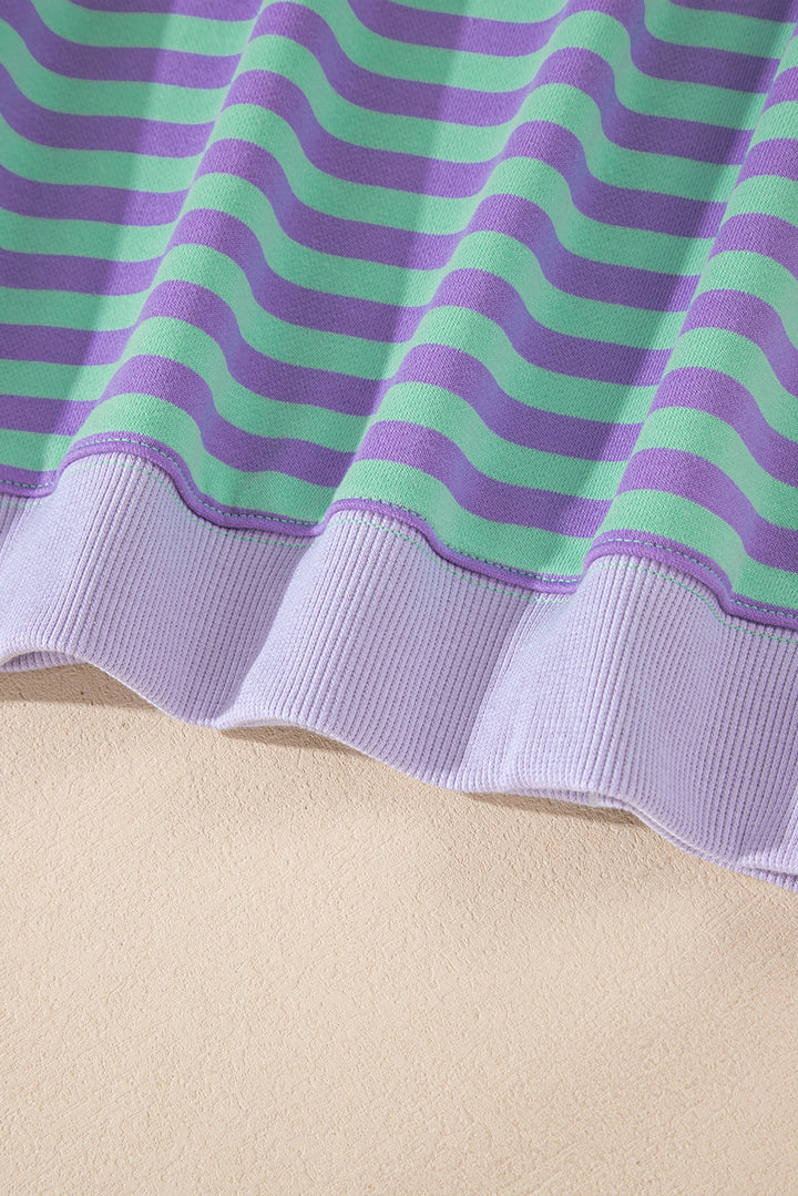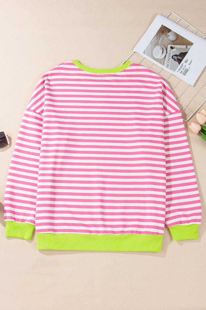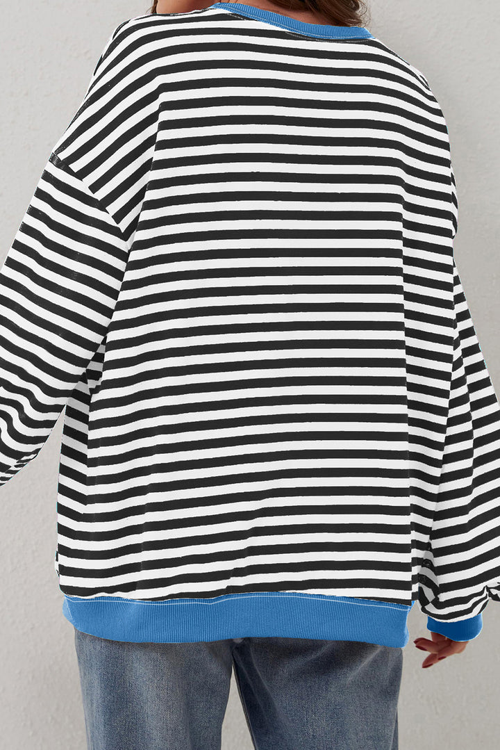 White Striped Contrast Trim Drop Shoulder Sweatshirt