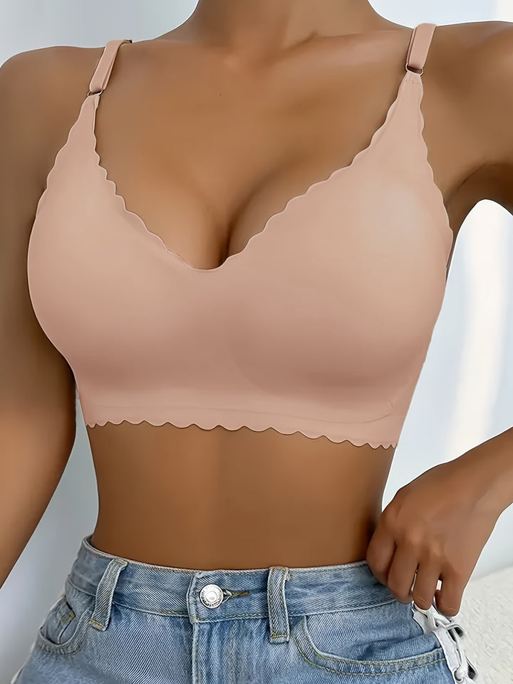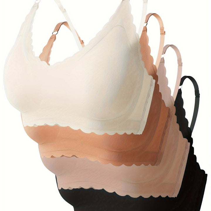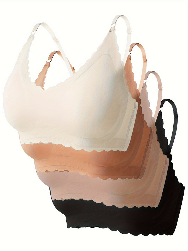 4pcs Elegant Solid Wave Trim Wireless T-Shirt Bra