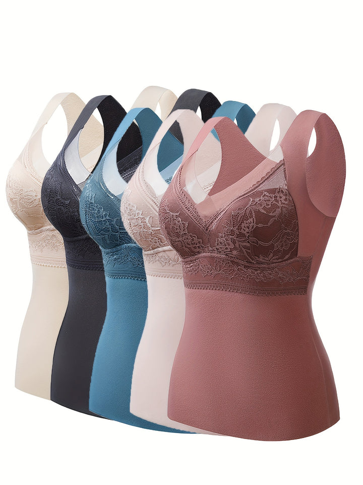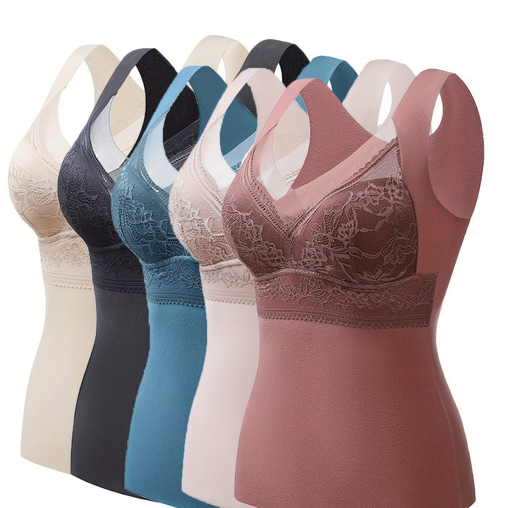 5pcs Elegant Lace-Accented Thermal Tank Tops