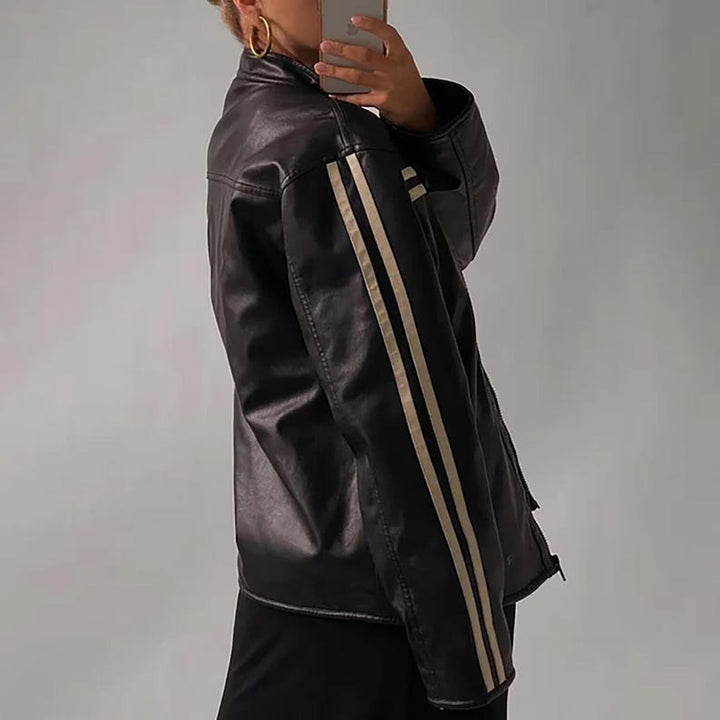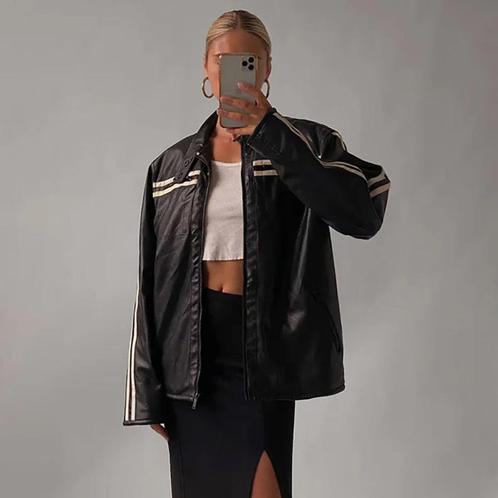 Stand out in style with this bold oversized leather jacket, designed by SavageeLeather and handmade in US. The eye-catching light yellow shoulder stripes add a sporty, retro edge to the classic black leather look — making it the perfect fusion of vintage streetwear and modern craftsmanship.