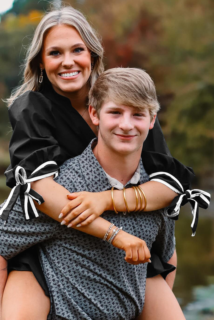 Black Contrast Trim Knot Cuffs Plus Size V Neck Mini Dress