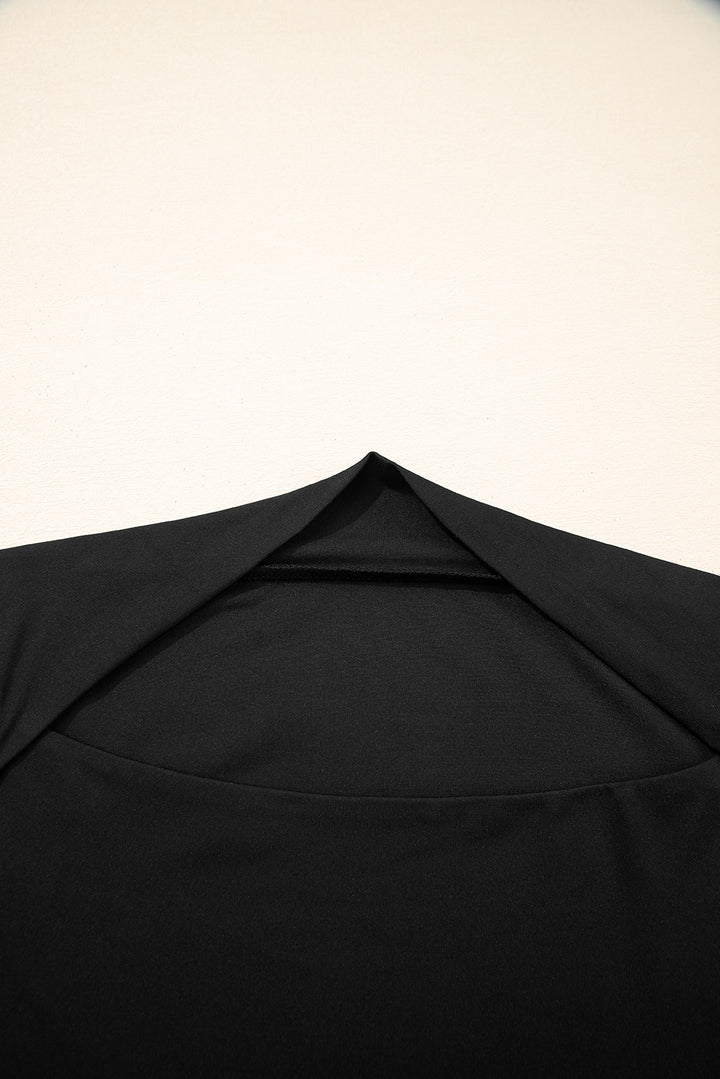 Black Crisscross Boat Neck Long Sleeve Slim Top