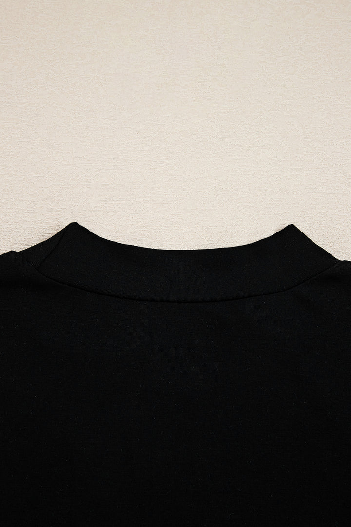 Black Plus Size Lace Patchwork Asymmetric Long Sleeve Top