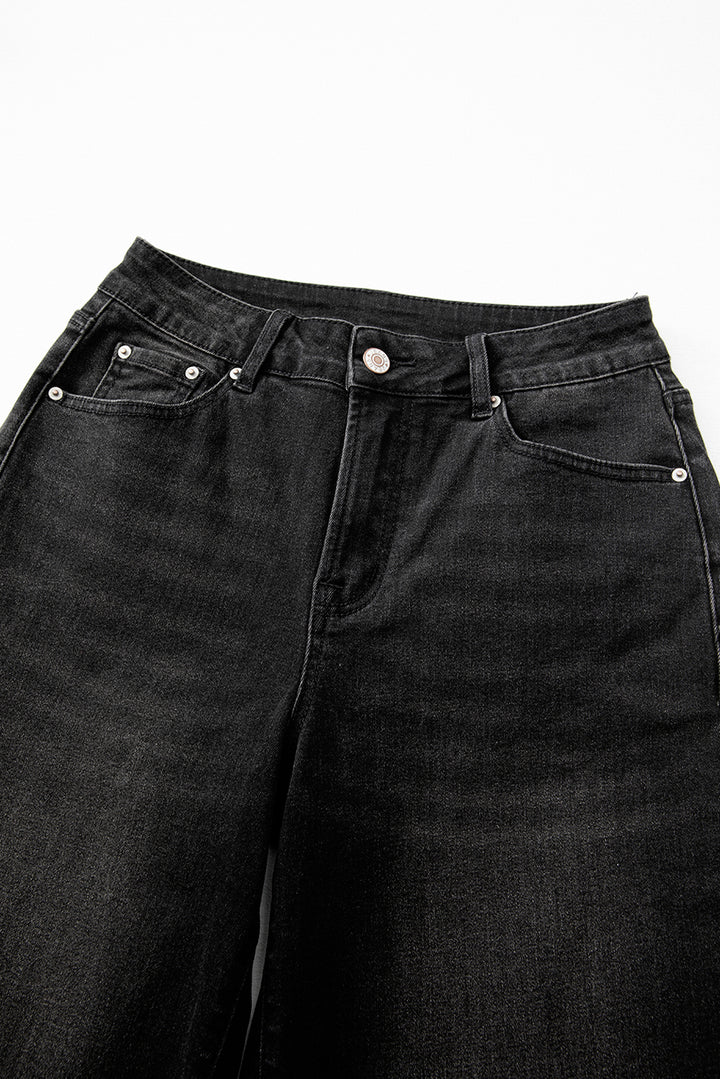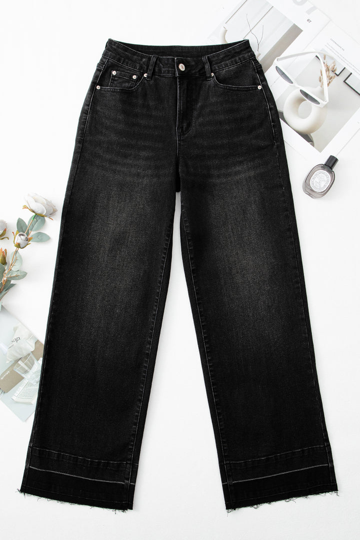 Black Raw Hem Unique Cuffs Straight High Rise Loose Jeans