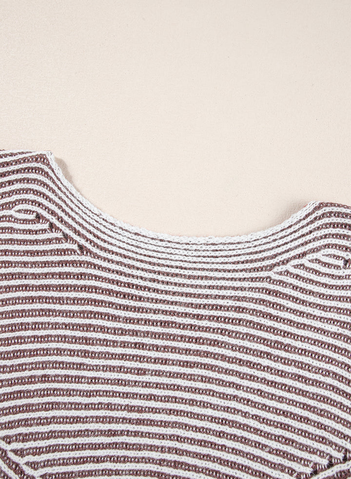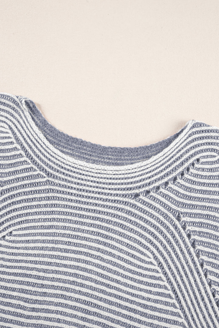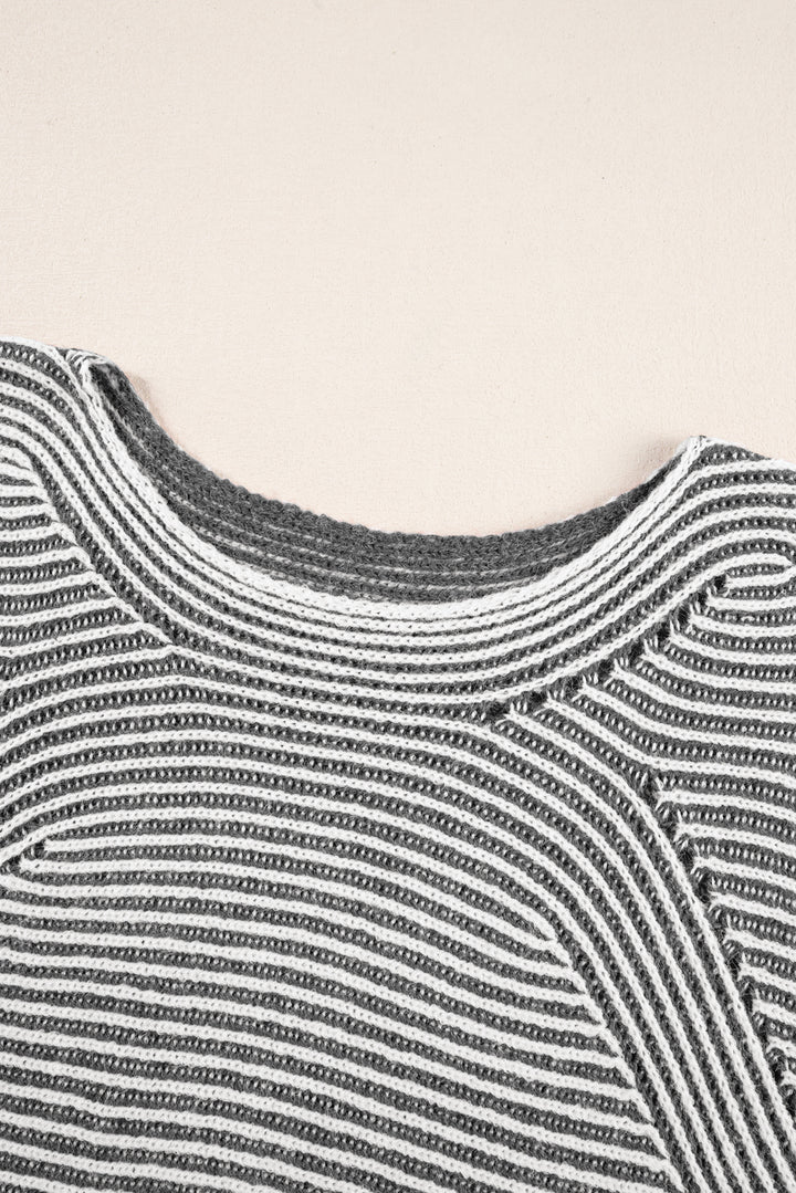 Black Striped Print Ribbed Knit Raglan Sleeve Baggy Sweater