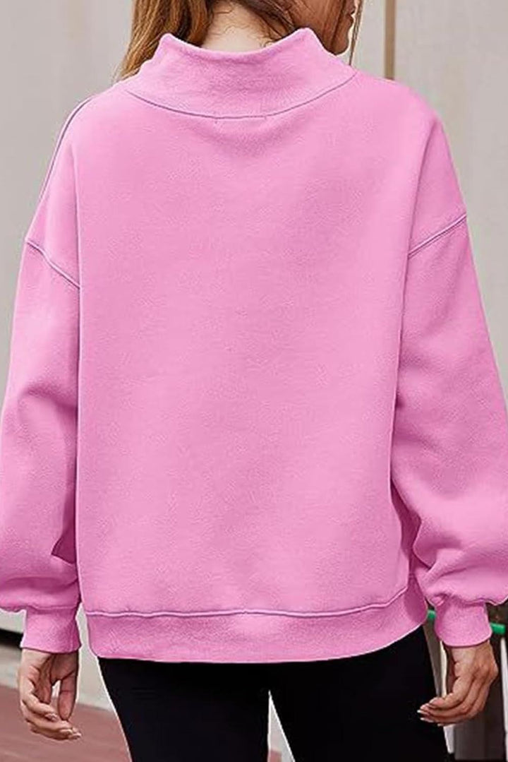 Bonbon Solid Half High Neck Long Sleeve Loose Hoodie