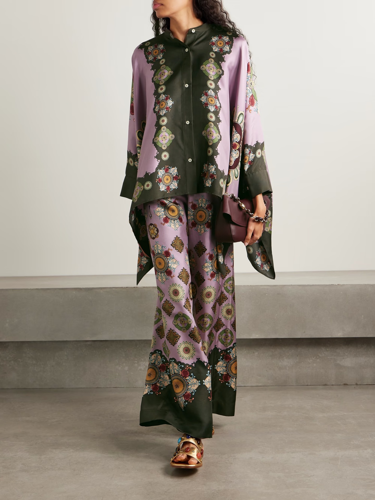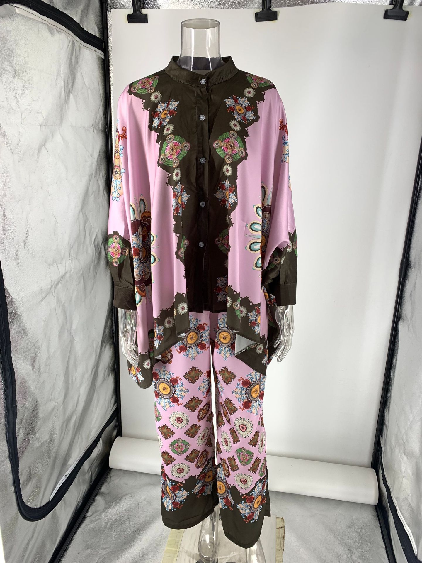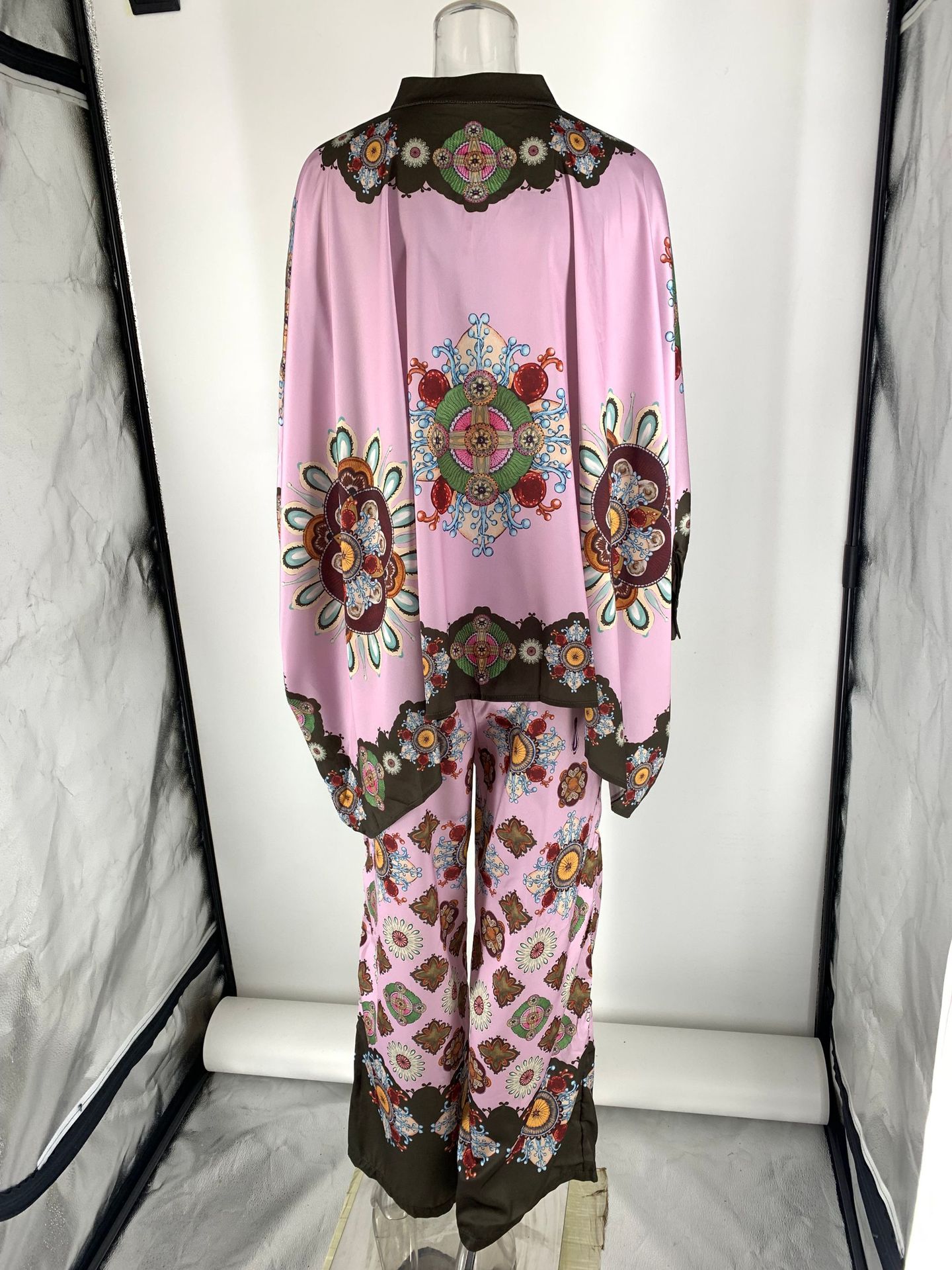 Casual Loose Retro Satin Top & Wide Leg Pants