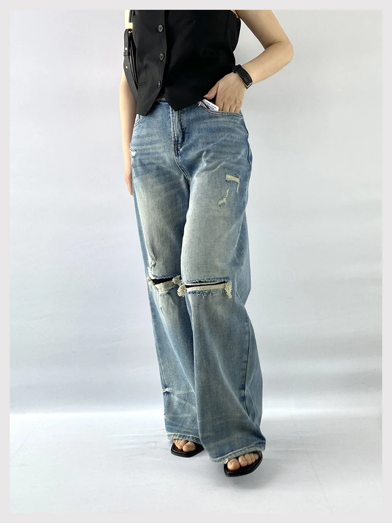 Cocoa Yacht Club Fine Wide Leg Ripped Jeans