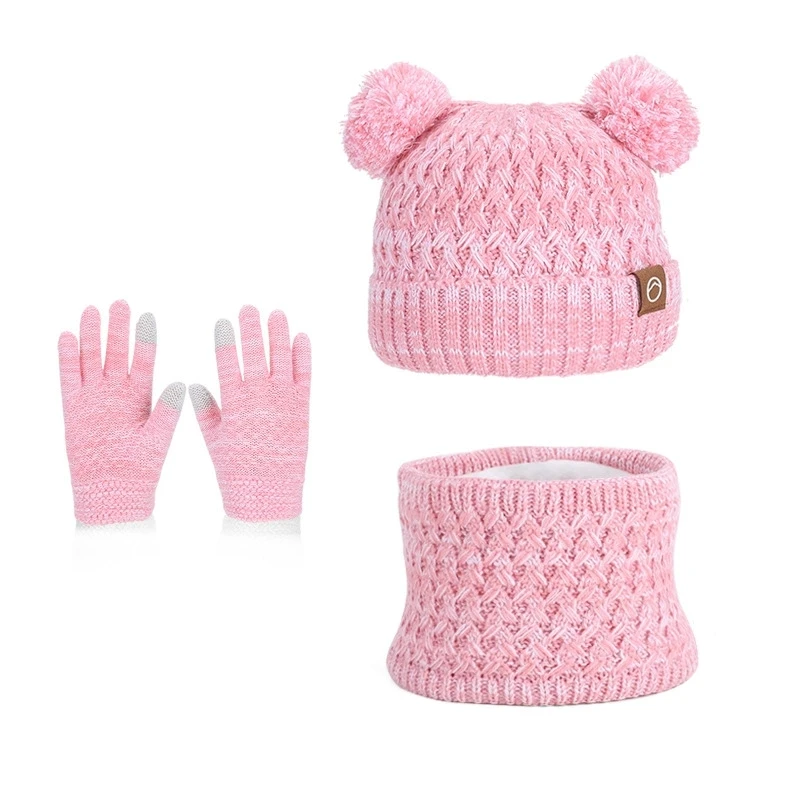 2025 Cute Autumn Winter Children Hat Scarf Gloves 3pcs Sets Outdoor Windproof Fleece Warm Knit Ring Muffler Hats Beanie for Boy Girl