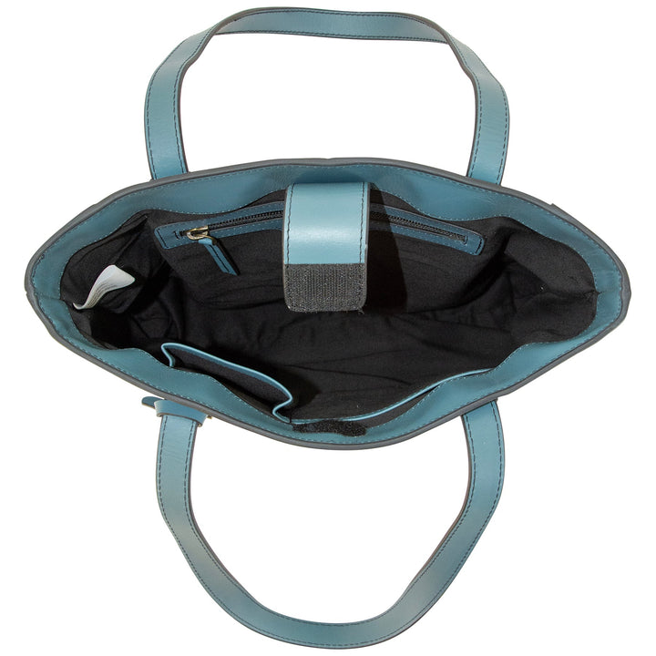 Starting with the exterior, this tote is characterized by its open design, inviting you to easily access your belongings at a moment's notice. The tote features a reliable Velcro closure at its opening, providing an added layer of security to your possessions. This design choice guarantees quick and easy access to your items while keeping them secure when needed.